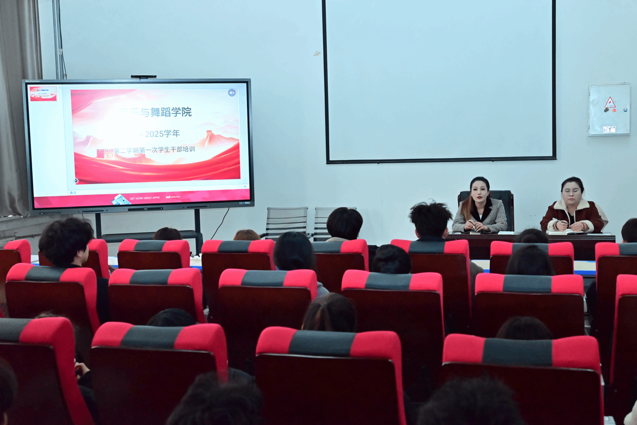 新学期,新气象,新征程。为进一步了解学生活动,提高班干部的管理水平,加强班级组织管理,保证我院学生活动各项工作稳步进行,提高部门凝聚力,推动学院学生工作高效展开,2025年02月26日下午,音乐与舞蹈学院组织开展2024-2025学年第二学期第一次学生干部培训。