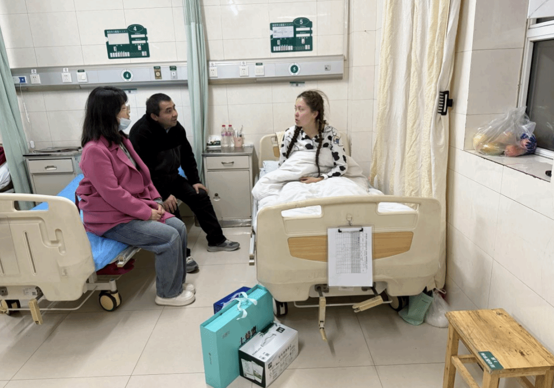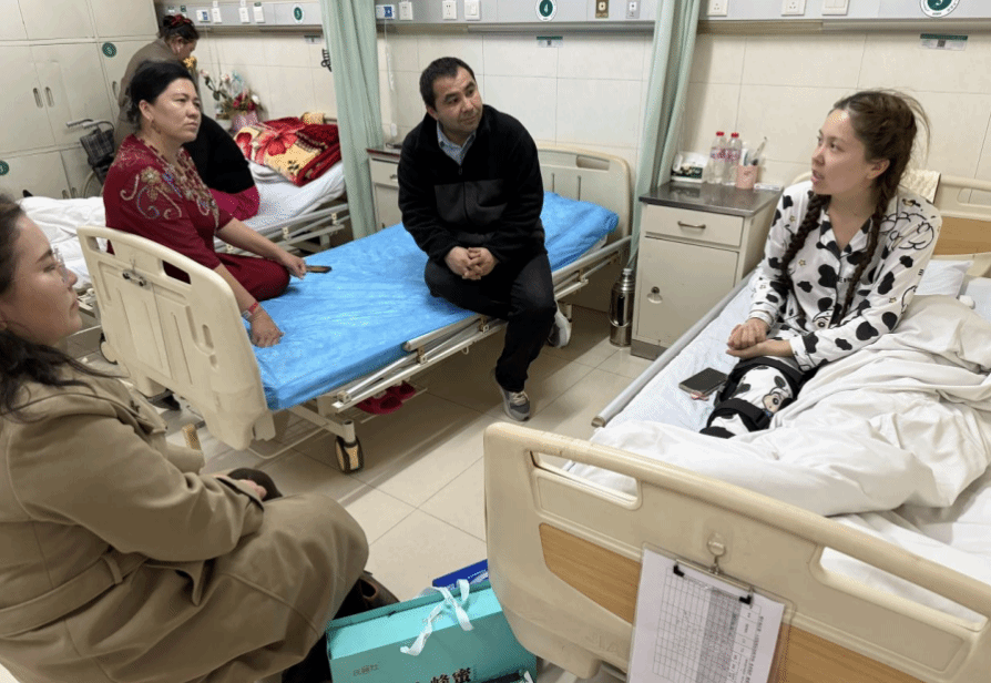 首先,艾山江老师向主治医生详细询问了阿达来提同学的病情和治疗方案,对医生的精心治疗表示感谢。接着,他嘱咐阿达来提安心养病,积极配合治疗,争取早日康复,如有任何困难,无论是生活上还是学习上的,都要及时向学院反映,学院一定全力提供帮助。最后,夏尔帕提老师和李月萍老师细心地为阿达来提介绍了目前专业课程学习的进度和安排,鼓励阿达来提要以良好的精神状态战胜病魔,早日重返校园。