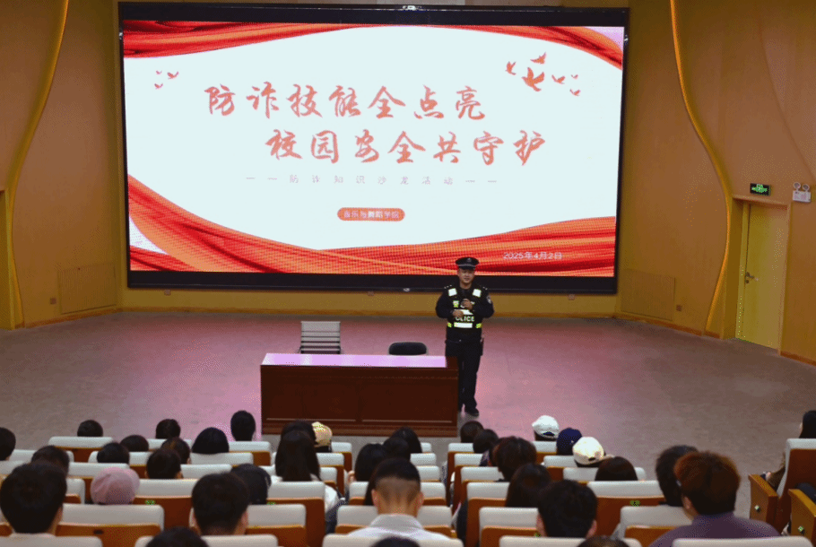 在当今数字化时代,诈骗手段层出不穷,校园作为人员密集、信息交流频繁的场所,也成为诈骗分子觊觎的目标。为切实增强广大师生的防诈骗意识,提升识别和防范诈骗的能力,音乐与舞蹈学院积极行动,全面开展“防诈技能全点亮,校园安全共守护”系列活动,全力为校园安全保驾护航。4月2日,学院精心筹备,邀请了公安部门经验丰富的反诈专家,举办了一场场生动且极具教育意义的防诈骗专题讲座。