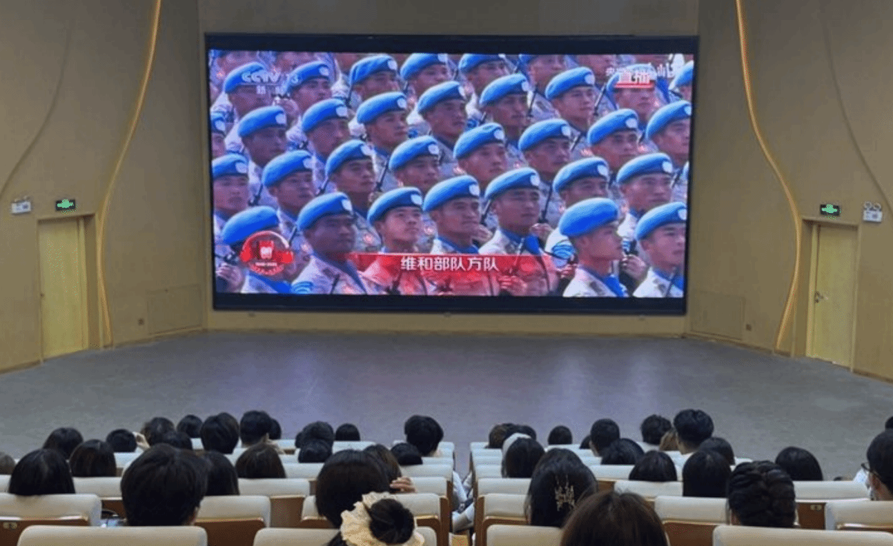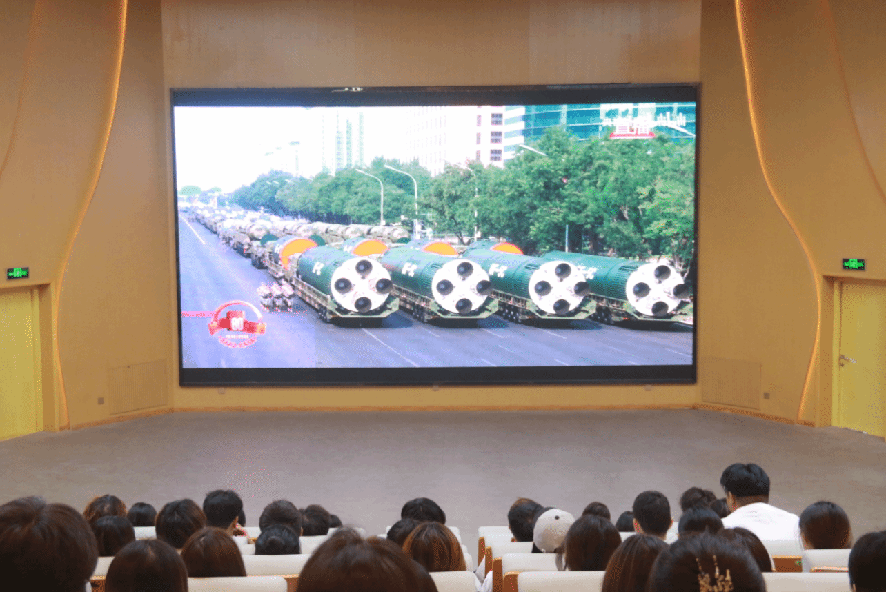 为加强我院学生的爱国主义教育,弘扬爱国主义精神,深刻领会国家的发展历程和军队建设的伟大成就,激发学生的爱国热情,增强民族自信心、自豪感和责任感。我院于9月3日组织全体学生观看了九三阅兵式。