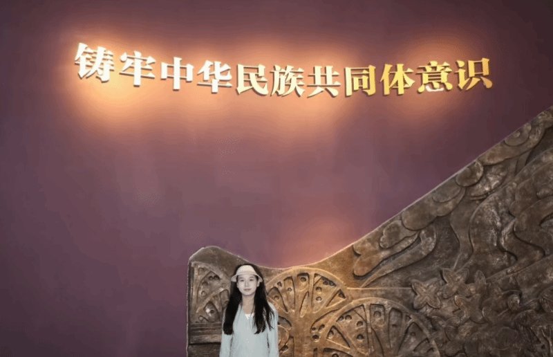 石嘉欣同学参观达瓦昆沙漠旅游区新疆记忆馆与卫国影像馆,通过1100平方米展厅中的浮雕、文物和影像资料,深刻感悟"史海春秋 金瓯无缺"的历史厚重,认识到展馆作为连接过去与未来的桥梁作用,坚定了铸牢中华民族共同体意识的信念。