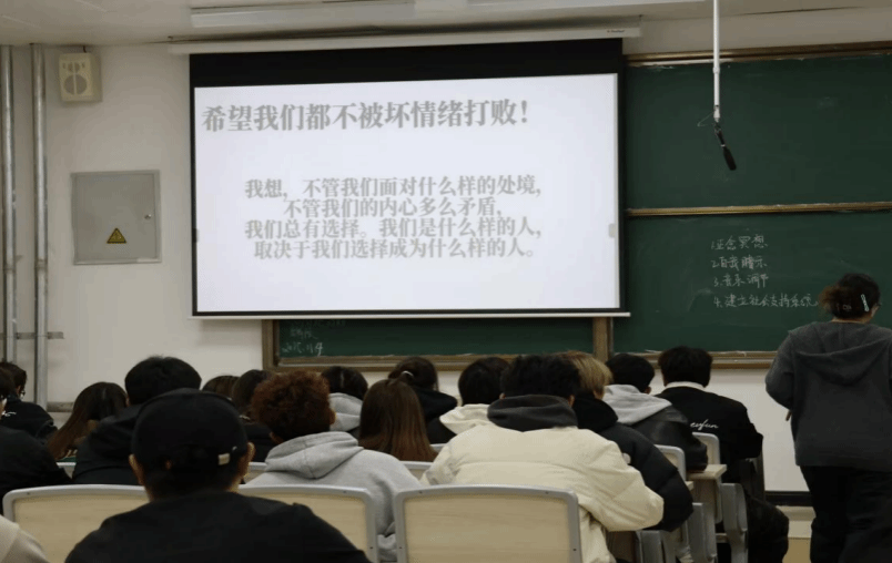 活动现场,主讲人重点分享了正念冥想、自我暗示、音乐疗法以及构建社会支持系统等常见的情绪调节策略,帮助同学们掌握日常情绪管理的有效方法。此外,在讲座尾声还设置了“心灵放松”环节,鼓励同学们回顾一天的情感经历并相互交流分享,引导学生对所学内容进行反思。