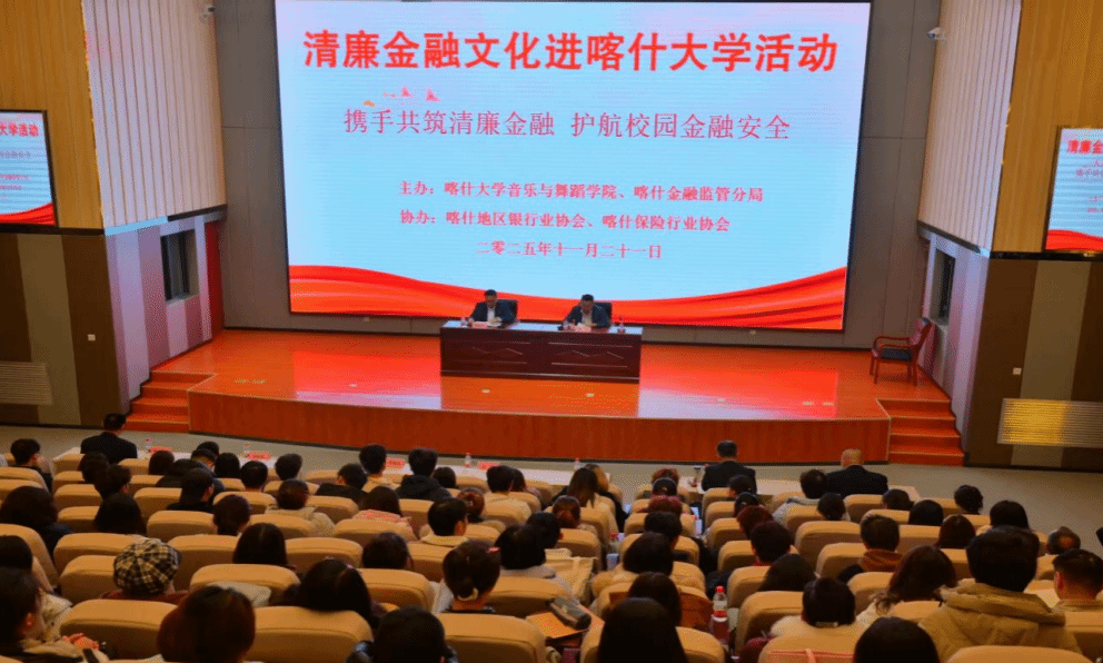 金融是现代经济的核心,廉洁是行业发展的标尺,青年学子是未来金融生态的建设者。为传递廉洁理念、普及金融常识,筑牢思想防线,共绘廉洁金融的青春画卷,引导大家树立正确价值观。2025年11月21日,喀什大学音乐与舞蹈学院与喀什地区多家银行联合主办的“廉洁金融文化进校园”主题活动在图书馆报告厅举行。
