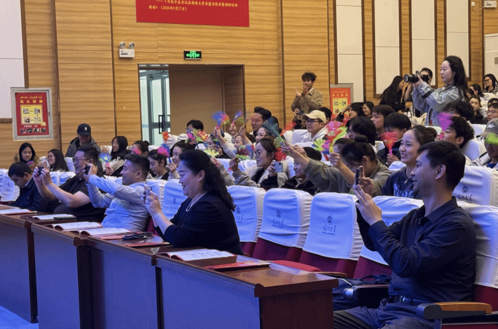 山东艺术学院党委书记徐梅,喀什大学党委副书记、校长帕力旦·吐尔逊等领导与现场师生一同观看了演出。演出在优美旋律中拉开帷幕,回顾了自2017年刘晓鹏老师援疆起步,至2025年两校签署合作协议建立长效机制的不凡历程,这份始于教育帮扶、归于文化同心的情谊,早已在时代的见证下生根发芽。