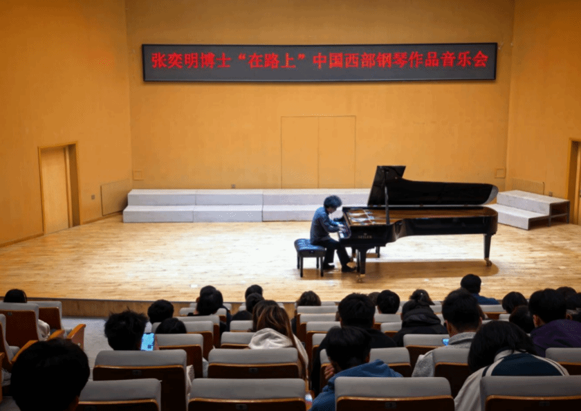 “在路上——中国西部钢琴作品音乐会”于2025年4月1日在喀什大学新泉校区石榴剧场音乐厅拉开帷幕。这场音乐会以“挖掘西部音乐文化基因,探索钢琴艺术本土化表达”为核心理念,通过经典作品首演、学术深度解读与跨界创新实践,构建了一场兼具历史厚度与时代精神的音乐对话。此次音乐会由星海音乐学院中国钢琴音乐研究中心专家、著名钢琴家张奕明博士独奏,星海音乐学院中国钢琴音乐研究中心秘书唐佳妮老师担任学术主持与解说,我院音乐学专业师生参加了音乐会及钢琴教学现场观摩活动。