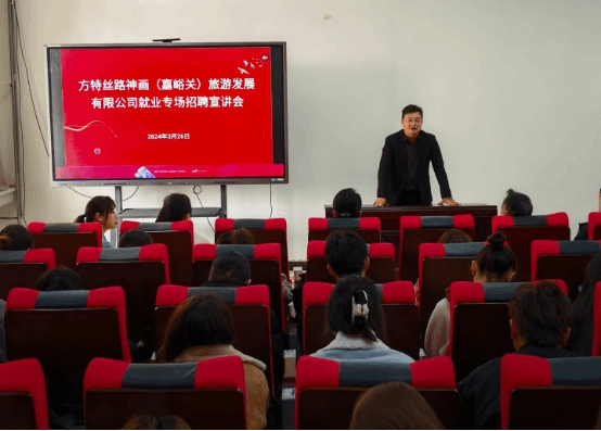 为落实学校党委访企拓岗促就业专项行动要求,进一步拓宽毕业生就业渠道。3月27日上午,音乐与舞蹈学院联合新闻传播学院邀请方特丝路神画(嘉峪关)旅游发展有限公司人力资源部主任王亚亚一行到学院开展就业座谈和招聘宣讲。音乐与舞蹈学院党总支书记任飞、党总支副书记王英阁,新闻传播学院党总支副书记吾麦尔江·艾麦提、团委书记塔依尔·吾拉音等参加了就业座谈。