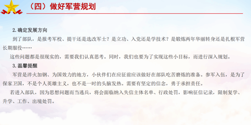 在阐释“大学生当兵为了什么”这一根本问题时,张哲从个人价值、家庭荣耀、国家使命三个维度展开,指出军营是锤炼意志、塑造人格、升华信仰的熔炉,军旅经历所赋予的责任感、纪律性与团队精神,将成为学子终生受益的宝贵财富。他鼓励同学们树立远大志向,勇担时代重任,把爱国之心化为报国之行,在实现强军目标的征程中书写灿烂的青春篇章。
