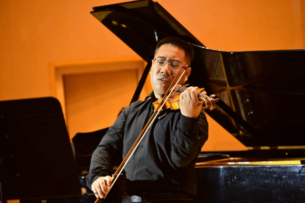 近日,音乐与舞蹈学院在石榴剧场音乐厅举办“聆听经典”主题小提琴独奏音乐会。小提琴博士王毅与钢琴博士曾子荆携手演出,通过演奏中国、俄罗斯和法国的经典作品,为观众呈现了一场视听盛宴。本场音乐会由莫尼拉·木萨老师主持,全场座无虚席