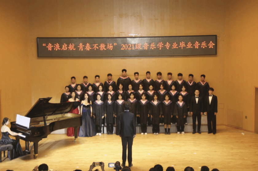 2021级音乐学专业的毕业生们用歌声、乐声和舞姿,为听众们带来了一场视听盛宴。“音浪启航,青春不散场”,这场毕业音乐会是2021级音乐学专业毕业生们青春的高光时刻。他们用音乐和舞蹈在舞台上绽放光彩,每一个音符、每一个舞步都凝聚着他们大学时光的努力与汗水。为自己的大学生活画上了圆满的句号,也将带着这份对艺术的热爱和青春的激情,勇敢地迈向未来的广阔天地。“音浪启航,青春不散场”音乐会虽已落幕但毕业生们的音乐之路才刚刚启航,愿他们带着青春的梦想,在未来的舞台上继续绽放光芒,书写属于自己的精彩篇章。