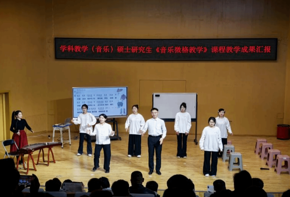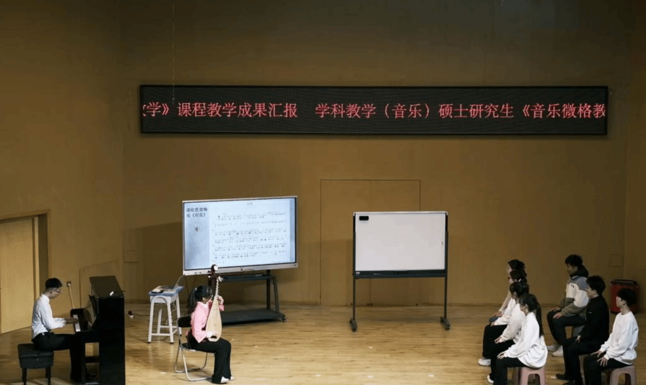 12月26日晚,音乐与舞蹈学院在新泉校区石榴剧场音乐厅隆重举行了“微格艺境·教学新声”——学科教学(音乐)研究生《音乐微格教学》暨音乐学(师范)22、23级《音乐教育》主修课程教学成果汇报音乐会。本场音乐会是音乐与舞蹈学院在学科教学领域首次开展的专业汇报音乐会,是新时代音乐与舞蹈学院教育教学与人才培养发展的一次重要的探索与实践。
