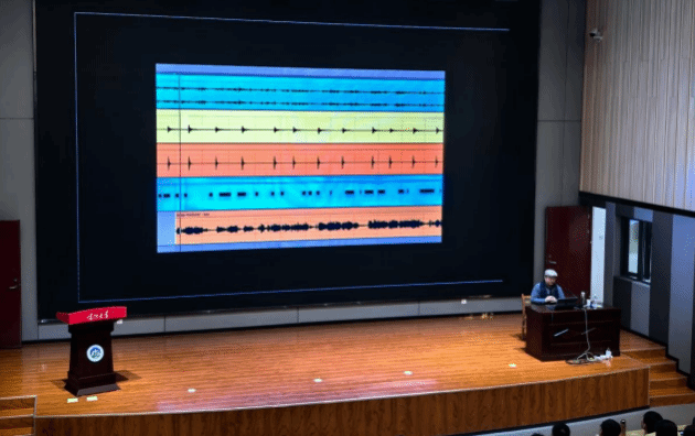 申林老师首先以1857年“声波记录仪”的发明为切入点,通过一段跨越百年的声音技术演进史引出讲座主题,并巧妙抛出“哪段音乐是AI生成”的互动问题,他播放音频请同学们现场有奖竞猜,现场师生踊跃参与讨论,在观点交锋中大家直观感受了AI音乐与人类创作的异同,点燃了全场的学习热情。随后,申林老师系统梳理了遗传算法、递归神经网络等核心技术,结合DDSP数字信号处理、Dubler 2语音转乐器等实用工具,以及EMI系统、AIVA虚拟作曲家等典型案例,深入浅出地解析了AI在音乐风格复刻与创作辅助中的实现逻辑与应用前景。整场讲座内容前沿、节奏紧凑、互动性强,申林老师用深入浅出的语言、生动鲜活的案例,系统阐释了AI技术在音乐创编中的应用逻辑、创新路径与实践方法,从技术原理到创作技巧,从思维革新到产业应用,全方位为我们打开了AI+音乐的全新视野。在互动环节中,申林老师耐心解答了现场师生的提问,进一步深化了师生对AI技术赋能音乐创新的理解。