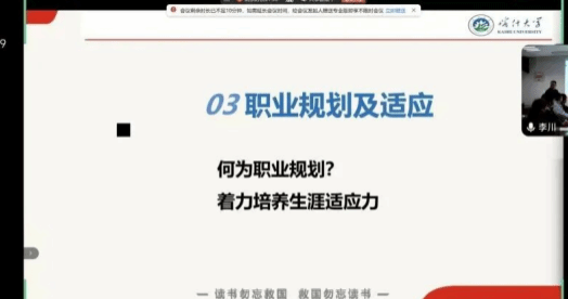 11月30日晚,一场主题为“大学生职业生涯发展与素质训练”的专题讲座在石榴剧场舞蹈厅成功举行。本次活动特邀商洛学院经济管理学院党委书记李川川老师担任主讲,为莘莘学子带来了一场关于未来职业发展路径的深度解析与思想启迪。讲座采用线上线下相结合的方式,音乐与舞蹈学院和物理与电气工程学院约300名师生踊跃参与,现场气氛热烈,交流活跃,取得了显著的育人成效。