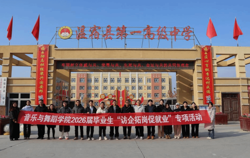 为深入贯彻落实学校党委“访企拓岗促就业”专项行动工作部署,进一步深化产教融合,精准对接用人单位需求,拓宽学生实践与就业渠道。近日,音乐与舞蹈学院组织10余名师生代表组成专项团队,赴阿克苏地区开展“访企拓岗”活动,通过实地走访搭建校企合作桥梁,为毕业生挖掘优质就业资源。